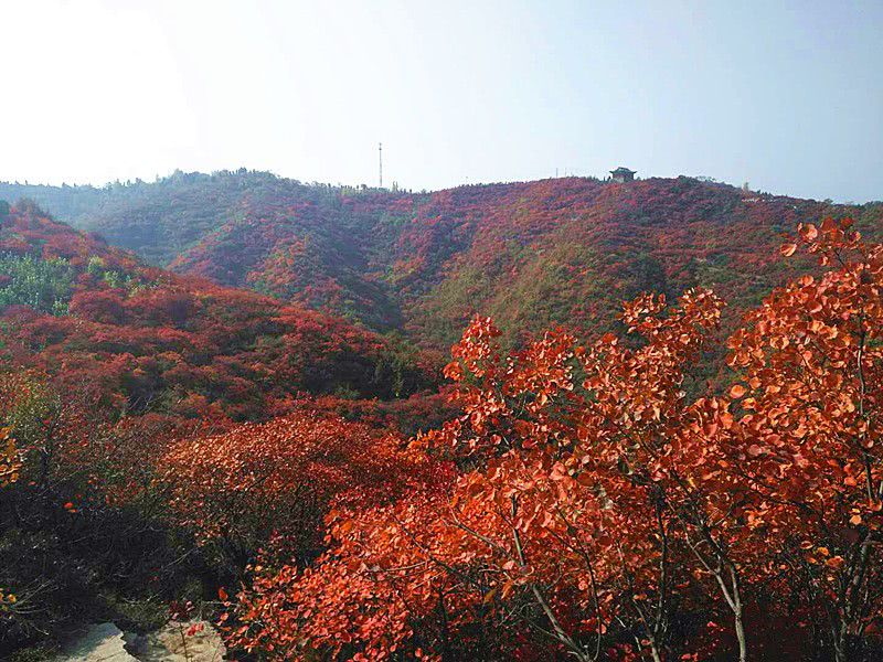 两个小时的车程,在大家的欢声笑语中很快度过。上午9点,大家来到了位于巩义市竹林镇的长寿山。顺着蜿蜒的石板路走上山顶,只见满山红叶,层林尽染,如霞似锦,大自然正用画笔浓墨重彩的勾勒灿若图绣的世界。