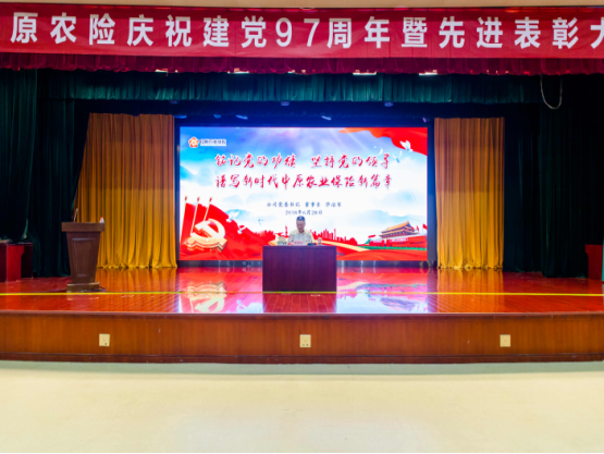 6月28日,公司召开庆祝建党97周年暨先进表彰大会,公司领导,总公司及河南省公司(筹)全体人员,各支部支委,各分支机构(农险服务组)班子成员,县支公司(农险服务组)负责人,受表彰人员及2017年预备党员近400人参加会议。会议由党委副书记、副总裁李惠勇主持。