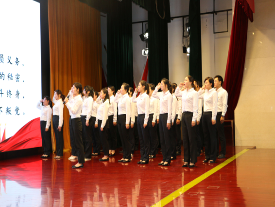 会上,30名新党员面向党旗,集体宣誓入党,全体老党员重温入党誓词。在洪亮的宣誓声中,全体党员进一步擦亮入党初心,坚定理想信念,决心切实发挥共产党员先锋带头作用,为公司实现高质量发展作出新贡献。随后,公司举行了企业誓词宣誓仪式,全体与会干部员工精神饱满,斗志昂扬,庄严宣誓,表达了凝心聚力、苦干实干铸就中原农险新辉煌的决心与信心。