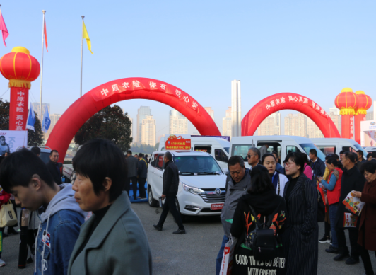 活动现场,人潮涌动,来自附近各省市的涉农厂家和消费者纷至沓来,或参观,或交流,或洽谈。印有“中原农险,你在我心安”“中原农险,真心真意,真保真赔”的彩拱门和气柱条幅,向广大客户展示着中原农险的惠农利民、责任担当的良好品牌形象。