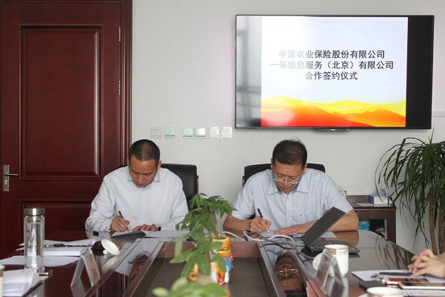 6月15日上午,中原农险与一米信息正式签订合作协议。公司总裁姜华,副总裁王长明,董监办主任李刚,互联网保险部负责人吕卫军,一米信息董事长付学飞,联合创始人王振,运营总监邹媚丽等相关领导出席了仪式。仪式由互联网保险部负责人吕卫军主持。