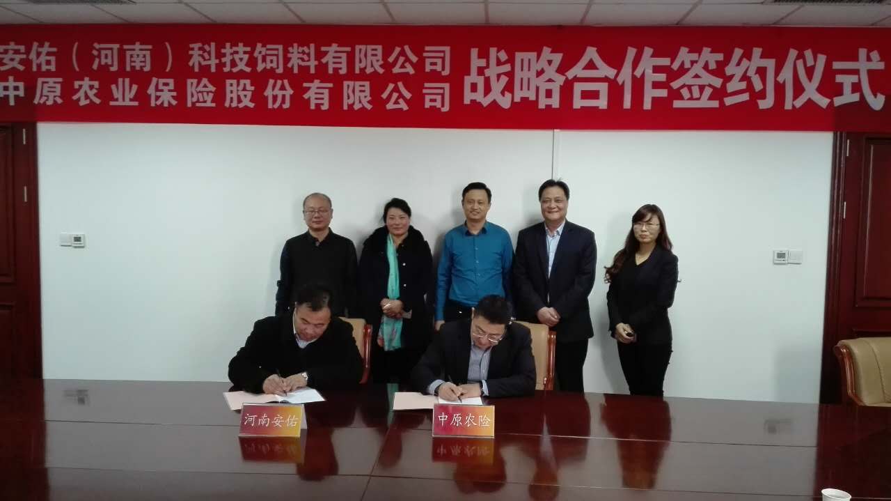 2016年11月24日,公司与安佑(河南)科技饲料有限公司(以下简称安佑)签订战略合作协议在公司八楼第一会议室举行。公司总裁助理鲁启明、业务总监冯卫民、养殖业保险部总经理冯松,安佑总经理朱军、财务经理党晓宇等出席。