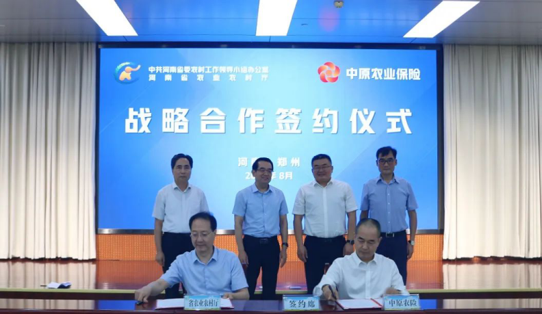 8月15日,中原农险与河南省农业农村厅举行战略合作协议签约仪式。河南省农业农村厅党组书记、厅长孙巍峰,中原农险党委书记刁玉新出席活动并致辞。