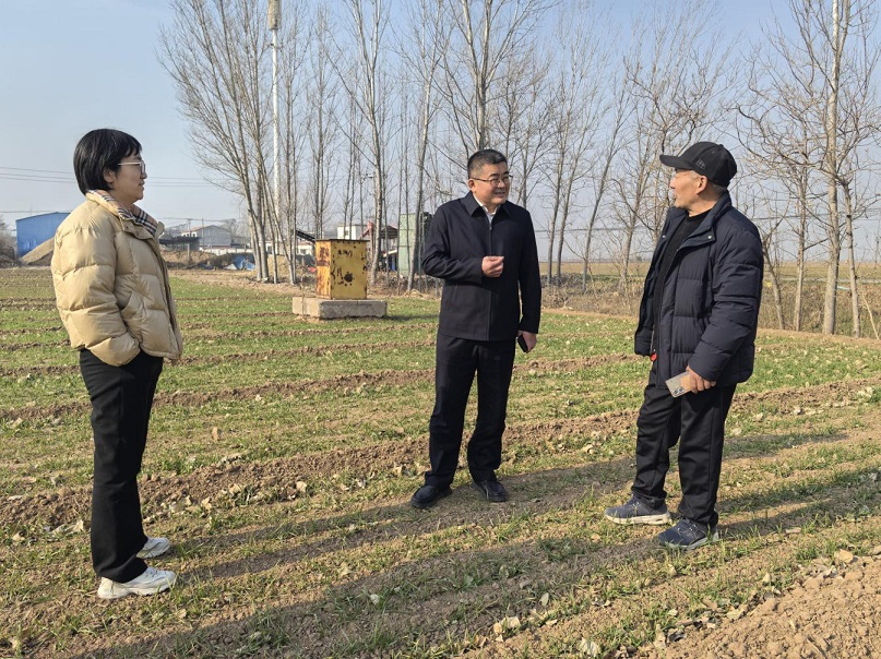 刁玉新一行首先前往安阳县沙里村种植大户高海生的生产基地开展调研,仔细察看冬小麦苗情长势,向农户详细询问今年粮食收成、受灾理赔、保险服务体验以及农业科技应用等情况。他强调,中原农险的服务必须贴近农户实际需求,要不断运用科技手段提升承保理赔的精准性。