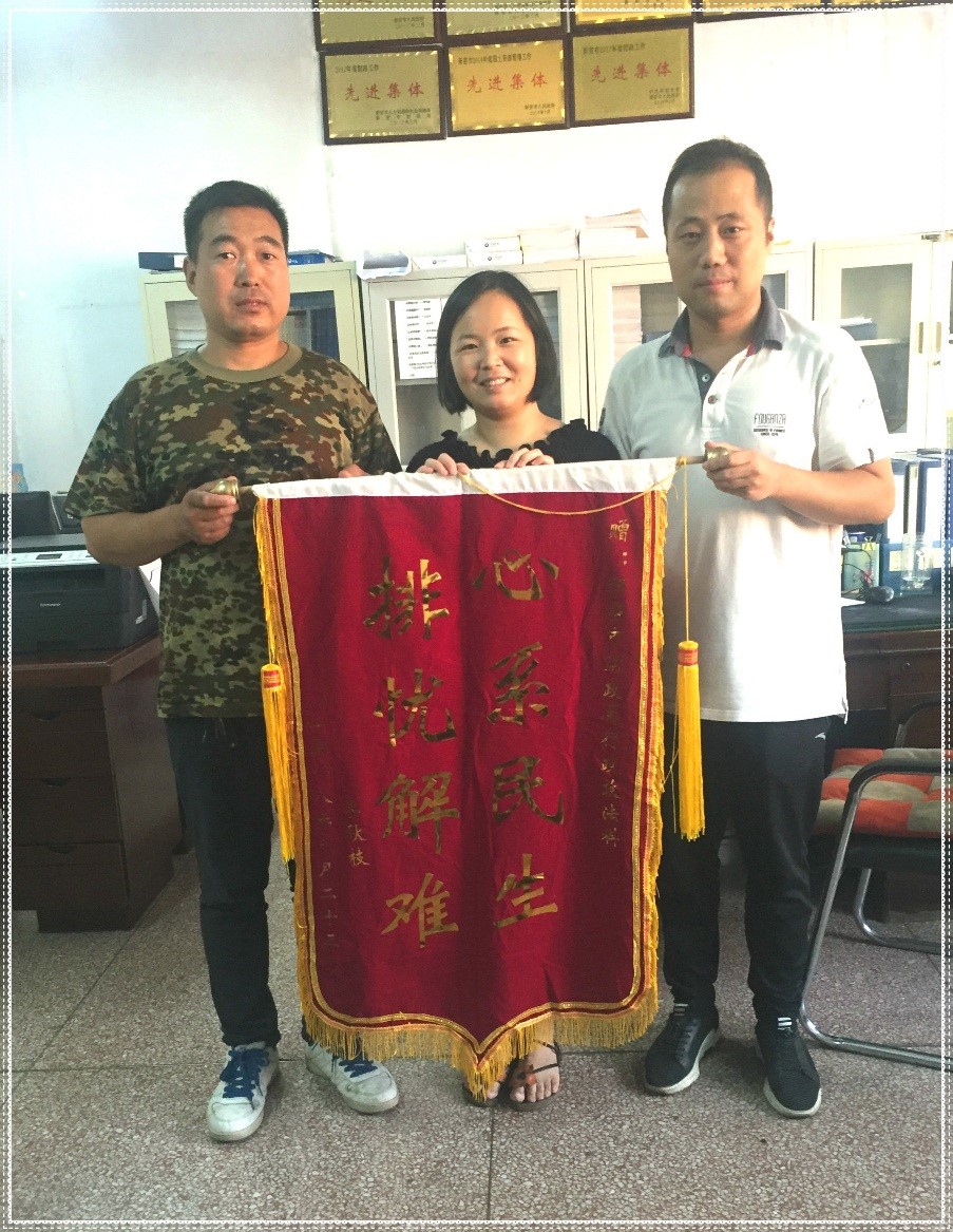 8月23日,李某枝的儿子在新密市服务站工作人员黄廷润陪同下,将一面印有“排忧解难 心系民生”的锦旗送到新密市财政局救助基金负责人李博手中,以此表达对这项惠民政策的感激之情。