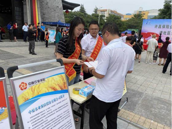 7月3日,中原农险许昌市道路救助基金服务站积极响应市银保监局及保险行业协会号召,在许昌市曹魏古城广场开展7.8 全国保险公众宣传日集中宣传活动。