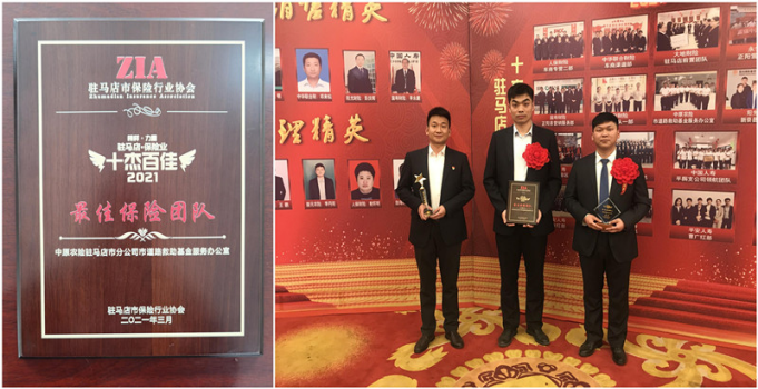 3月25日下午3点,驻马店市保险行业协会召开了“十杰百佳”活动表彰会议,中原农险道路救助基金服务办公室荣获“最佳保险团队”奖。