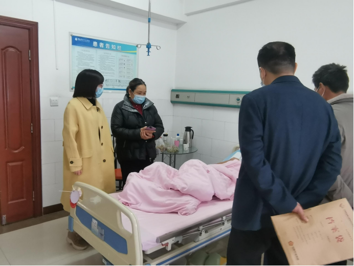 “真是太感谢了,你们中原农险救助基金帮助我们垫付医疗费已经帮了我们家大忙了,还又专门跑过来看望我家女儿,谢谢,谢谢你们!”住在安阳市第六人民医院伤者郭某汝的父亲郭某海紧握住陈东波的手感谢地说道。