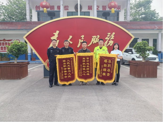 2024年5月6日,张先生专程来到浚县交警大队,向浚县交警大队以及浚县道路救助基金服务站献上了三面锦旗。