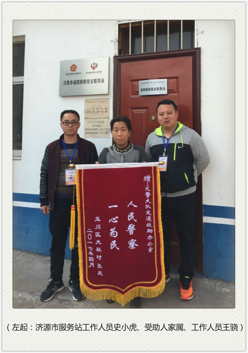 “太感谢道路救助基金政策了,还有你们这些为人民服务的工作人员,要不然,我们家真的就过不下去了啊”基金受助人张某的妹妹拉着中原农险济源市服务站工作人员的手激动的说。这是发生在4月12日,济源市服务站办公室门口的一幕。