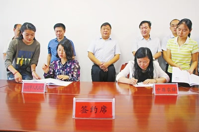 仪式上焦慧娟与史利敏代表双方签署就业扶贫协议。