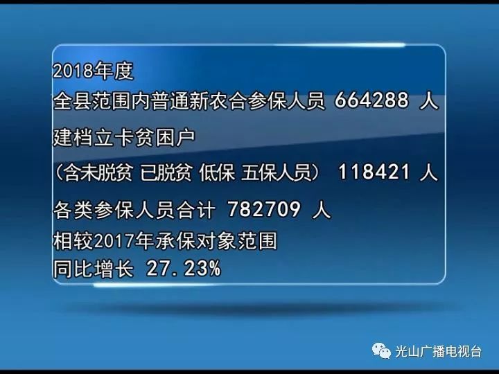 本着“应保尽保,应赔尽赔”的工作原则,2018年度全县范围内普通新农合参保人员664288人,建档立卡贫困户(含未脱贫、已脱贫、低保、五保人员)118421人,各类参保人员合计782709人,相较2017年承保对象范围同比增长27.23%。2018年度签单保费3913.55万元,相较2017年同比增长38.51%,其中财政补贴1588.54万元,各类参保人员自缴2325.01万元。