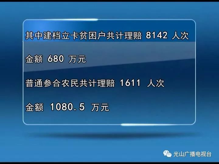 中原农险光山支公司工作人员王俊生:“针对贫困人口,在我县26家医疗机构中进行一站式即时结算。对于普通居民,我公司在行政服务大厅设立了专门理赔窗口,用来收取理赔材料和咨询等工作。正常情况下,10个工作日即可理赔到账。”