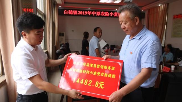 灾情发生后,中原农险孟津县营销服务部第一时间启动应急预案,开辟绿色理赔通道,安排人员和农业专家逐村逐户实地查勘。根据县农业农村局专家现场定损,中原农险研究决定,为此次受灾小麦绝产群众预先赔付90.48万元,其他受灾群众待农业专家出具鉴定报告后一并赔付,并于6月21日在白鹤镇举行了小麦受灾理赔款发放仪式。