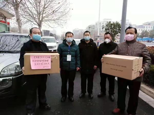 当晚9点,易选召和胡顺安全达到信阳,连夜向信阳职业技术学院附属医院捐赠口罩1000只。2月7日,中原农险分别向罗山县、潢川县、固始县三地各捐赠口罩3000只,为防疫一线人员助力。据悉,中原农险正在发动全系统力量,紧急采购第五批急用物资,根据疫情发展情况进行调拨,支援防疫一线。