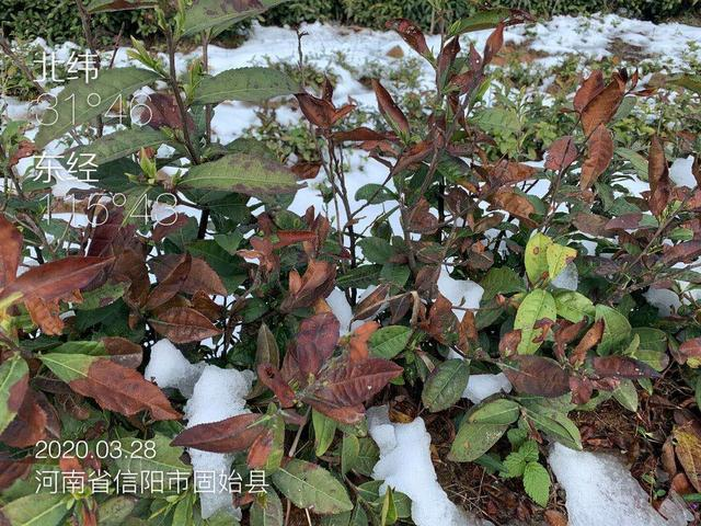 2020年3月27日夜,固始县遭受十几年一遇的倒春寒,气温骤降,南部山区下起了中雪。客户黄朝江、彭善洲向中原农险固始县支公司报案,他们所投保的茶园受此次天气影响,正值采摘期的茶树嫩芽遭受冻害,茶叶产量和品质出现不同程度下降。