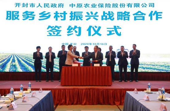 在签约仪式上,开封市政府副市长刘震介绍,自2015年以来,中原农险在助力开封市打赢脱贫攻坚战、疫情防控阻击战以及实现经济社会高质量发展进程中做出了积极贡献。目前开封市已进入决战决胜脱贫攻坚、全面建成小康社会,实现乡村振兴的关键阶段。此次签约,双方一定会在乡村振兴战略实施中有更深入的合作,在保障开封粮食安全、助推开封市“一十百千”工程建设、特色产业发展、农村社会治理、普惠金融服务等方面充分发挥保险机制功能作用,再创辉煌佳绩。