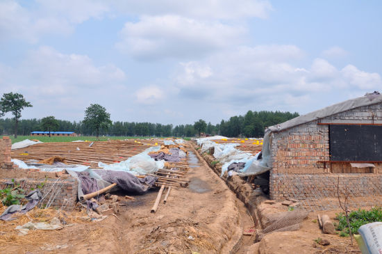 河南兰考县谷营镇爪营乡受损鸭棚。 杨磊 摄