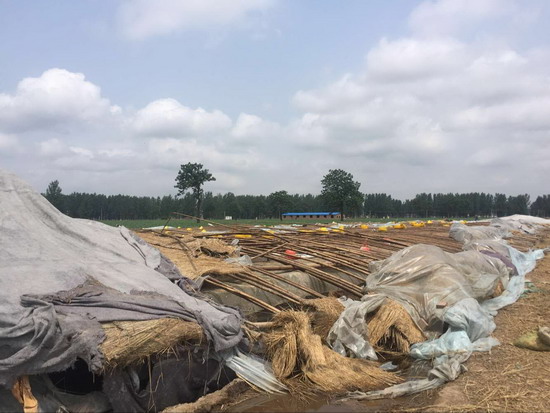 6月28日晚上10点多,大风伴随着暴雨突然来临,王想家的鸭棚很快就被刮塌,6000多只鸭子被压在了棚底。看着眼前的景象,夫妻俩瘫坐在地上,此时他们能想到的只有向村里求助。收到信息后,村里的扶贫驻队人员连夜将情况反映给了中原农业保险公司。第二天一大早,中原农险派人来到了鸭棚勘察,在办理好相关手续后,6月30号,23000元赔偿款送到了夫妻俩的手中。