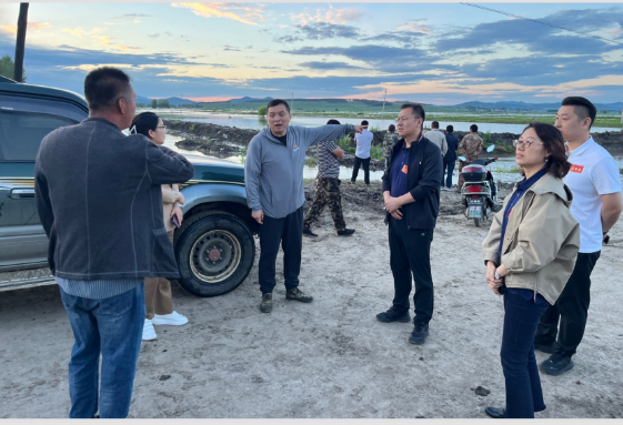 中原农险黑龙江分公司党委书记、总经理姜宇(右三)现场指导抗洪救灾和查勘定损工作。刘永智/摄