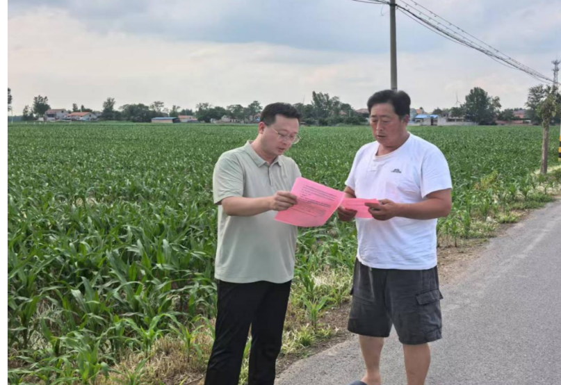 三门峡市第一营销服务部任意在张茂镇南头村耐心与农户沟通实际承保面积,确保精准承保。