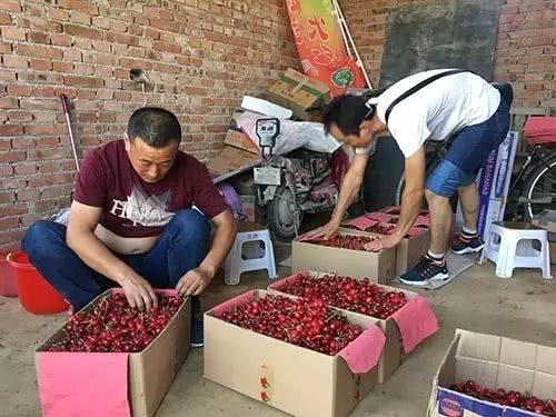 而在台前县打渔陈镇田庄樱桃种植基地,不少种植户已经在微信平台售卖产品,或者与淘宝、京东等电商平台开展了合作,顺丰、京东生鲜的宣传横幅已经挂在果园外,果农只需打个电话,就能将货物发至全国各地。